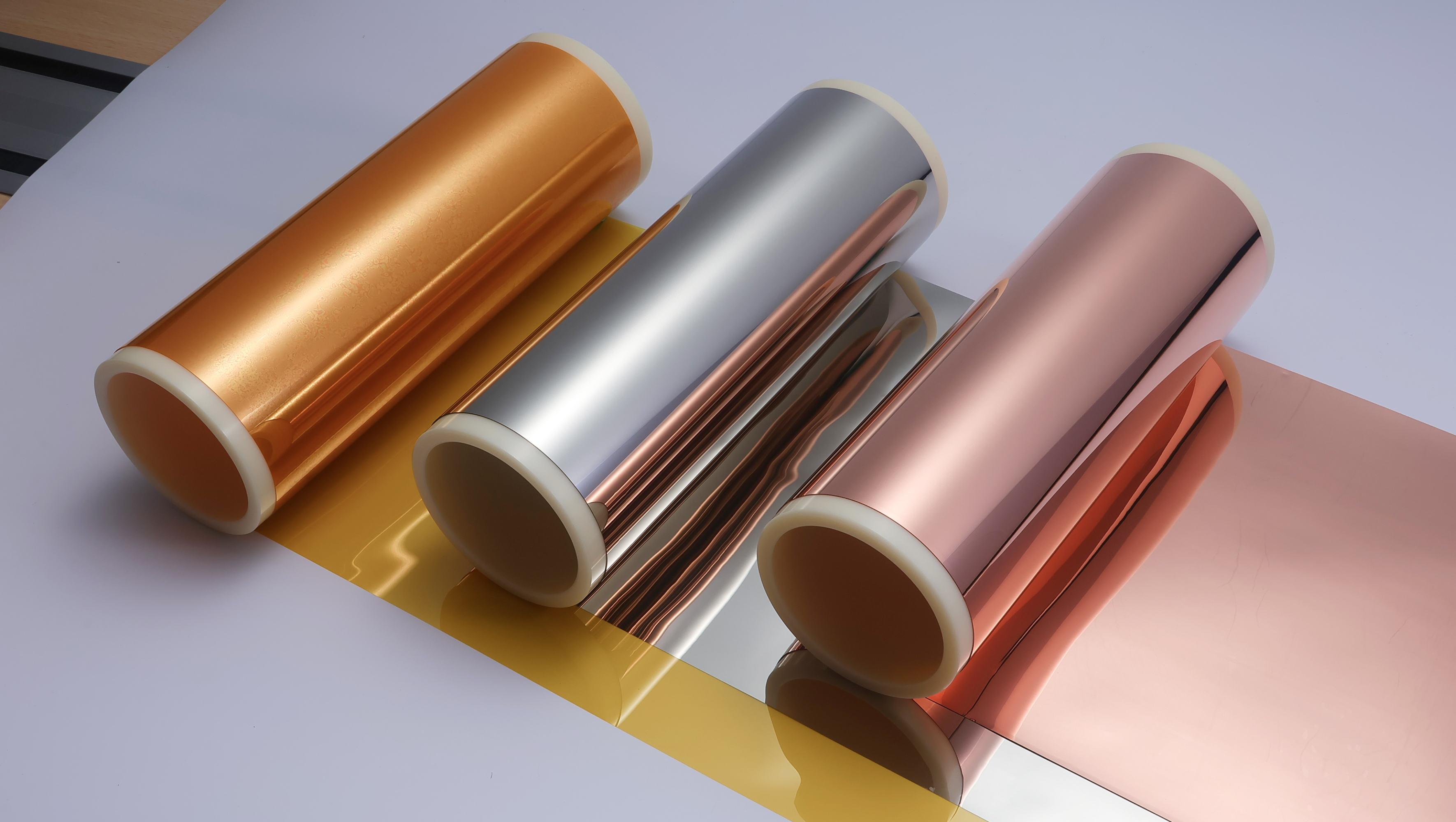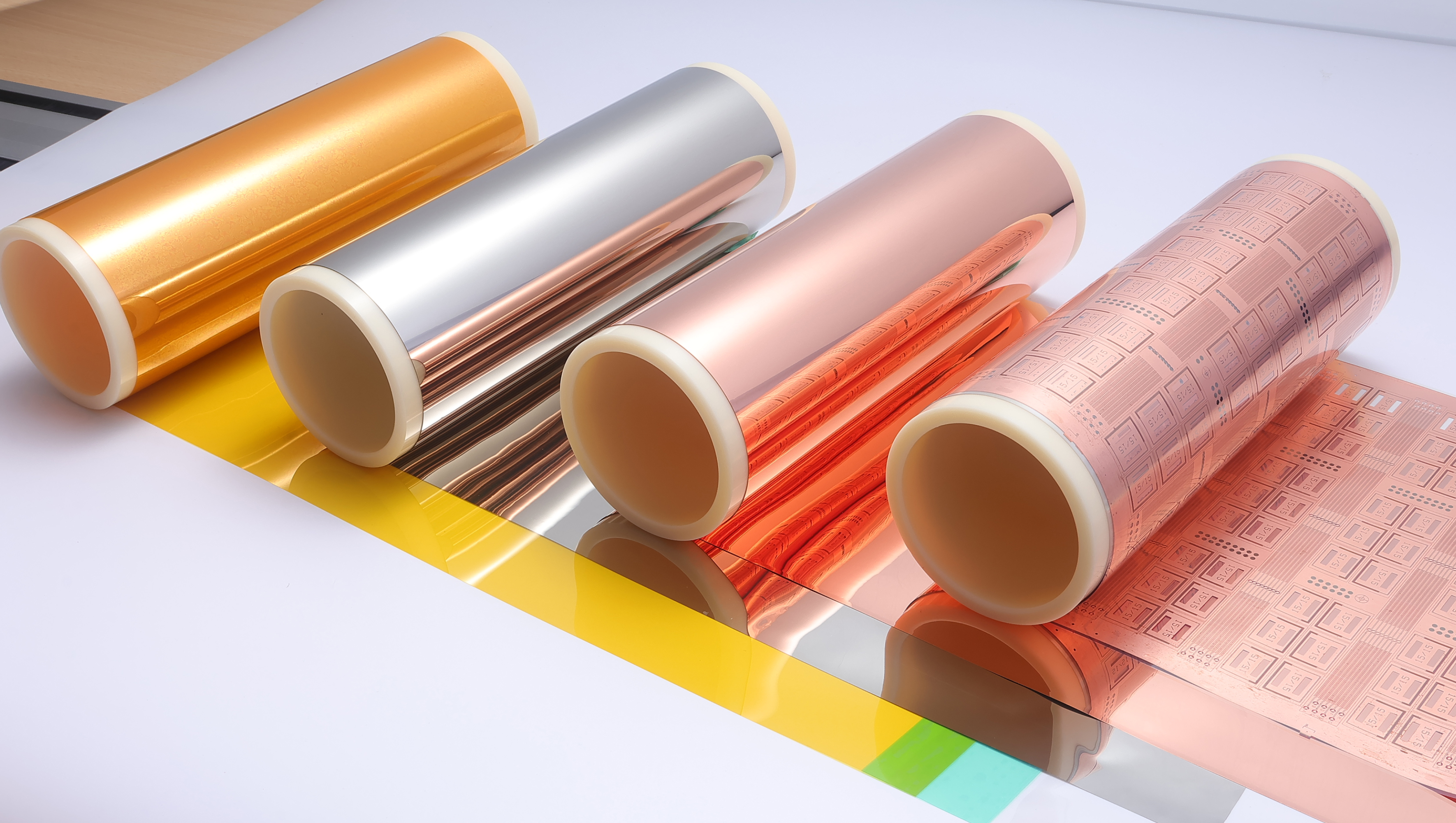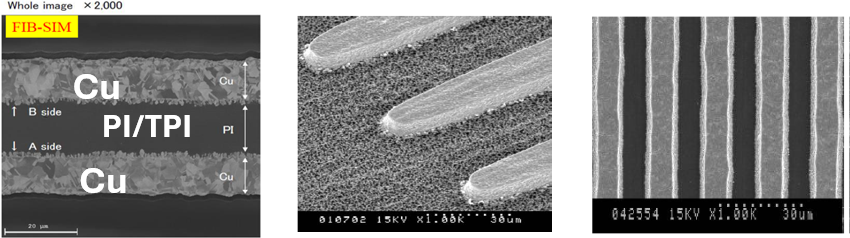 聚醯亞胺膜(Polyimide, PI)作為軟性銅箔基板的核心材料,短時間可承受高達400℃以上,搭配直接金屬化製程可避免傳統接著劑在高溫下劣化的問題,提升FPC可靠性。 PMR採用濕式金屬化(化學法)方式在PI薄膜上進行化學鍍鎳及電鍍薄銅兩個步驟。其優點為無接著劑結構、高附著力、優異熱穩定性、極薄金屬層、製程彈性與適合大規模量產,廣泛應用於高階軟性電路板與電子產品。